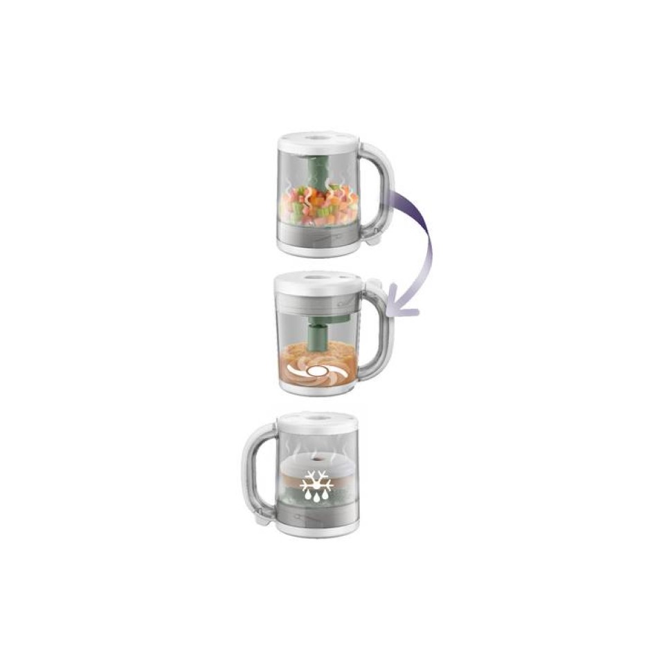 Kombinovaný parní hrnec a mixér Philips AVENT v jednom umožňuje snadno a rychle připravit jednoduchá výživná jídla pro děti. Stačí otočit nádobu-vařte v páře, mixujte, rozmrazujte a ohřívejte-jedinečné provedení 4 v 1.