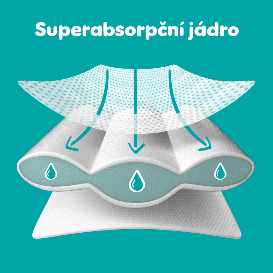 Až 12 hodin sucha a pohodlí pro miminko díky absorpčním kanálkům a měsíčnímu balení 208 plen.