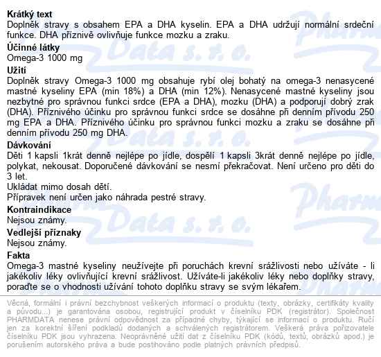 Doplněk stravy s obsahem EPA a DHA kyselin. EPA a DHA udržují normální srdeční funkce. DHA příznivě ovlivňuje...