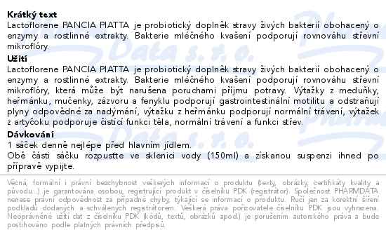 Lactoflorene Pancia Piatta je doplněk stravy s unikátní kombinací živých bakterií mléčného kvašení, rostlinných extraktů a enzymů, které společně přispívají k rovnováze střevní mikroflóry, normálnímu trávení a pomáhají snížit pocity nadýmání.