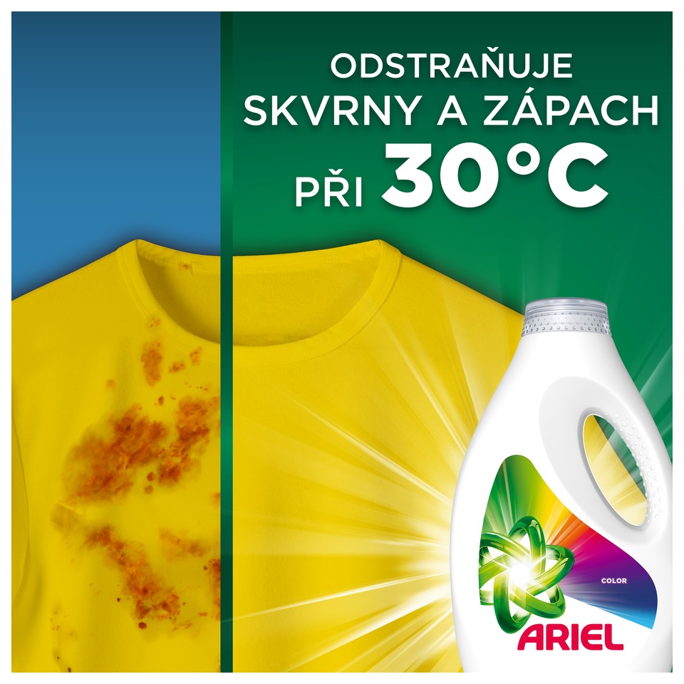 Chrání barvy a účinně odstraňuje skvrny i při 30 °C – spolehlivá čistota s Ariel Color.