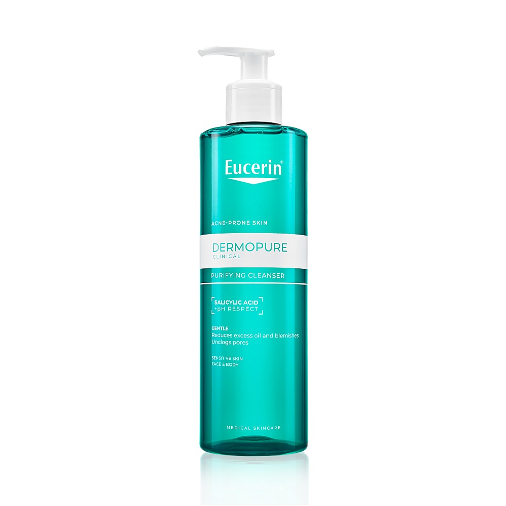 Eucerin DermoPure Clinical Hloubkově čisticí gel je vyvinut speciálně pro potřeby mastné a aknózní pleti. Jeho složení obsahuje pouze 8 ingrediencí, mezi nimiž vyniká kyselina salicylová (BHA), která proniká hluboko do pórů, rozpouští přebytečný kožní maz a pomáhá bránit jejich ucpávání. Díky svým exfoliačním a antibakteriálním účinkům podporuje čistší a zdravější vzhled pleti.