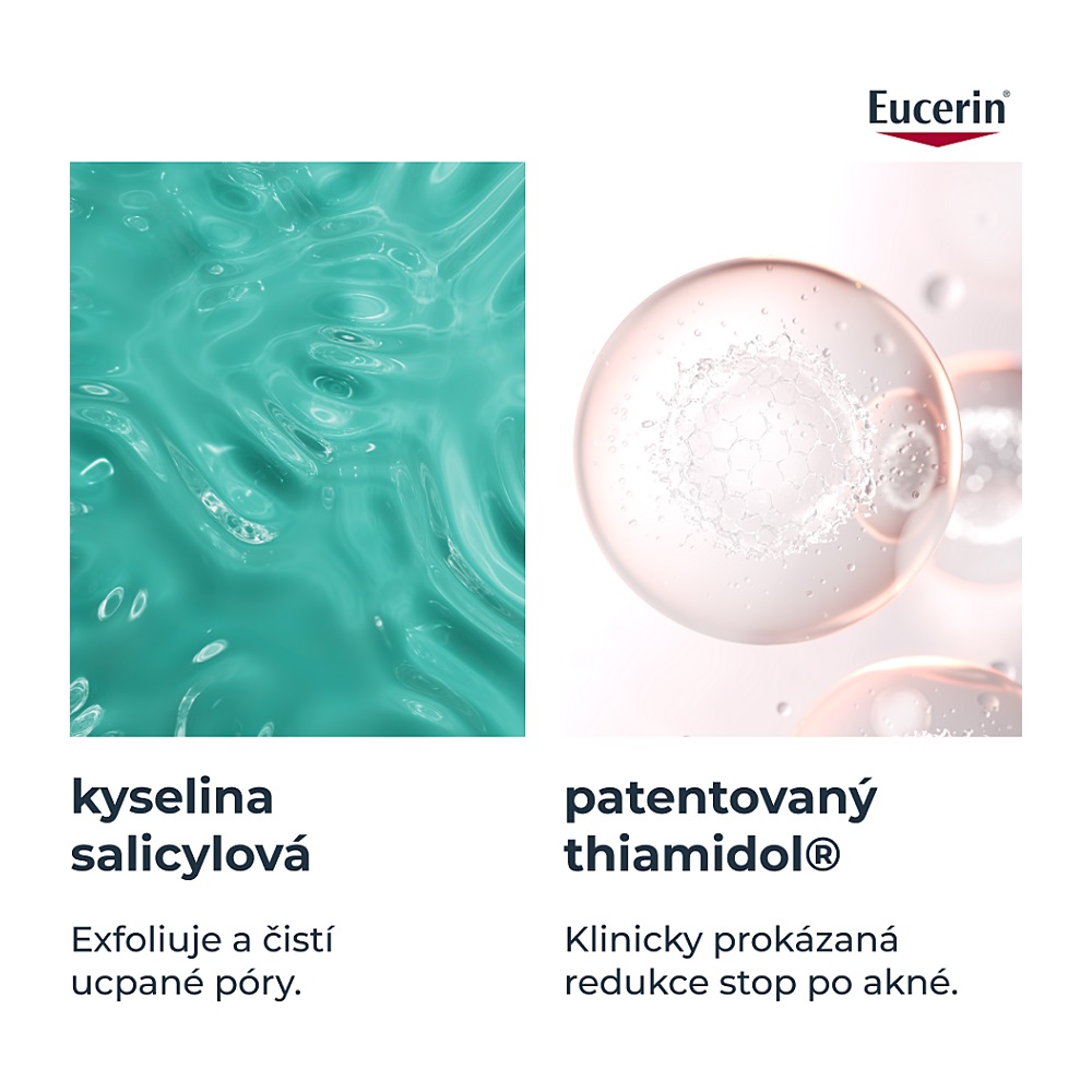 Patentovaná složka thiamidol působí přímo na pigmentové skvrny po akné a zabraňuje jejich opětovnému vzniku, zatímco kyselina salicylová proniká do pórů, odstraňuje přebytečný maz a odumřelé buňky, čímž pomáhá předcházet novým nedokonalostem. Krém navíc obsahuje skvalan a bambucké máslo, které pokožku vyživují a podporují její přirozenou regeneraci. Klinické studie potvrzují redukci nedokonalostí a viditelných skvrn již během dvou týdnů pravidelného používání.