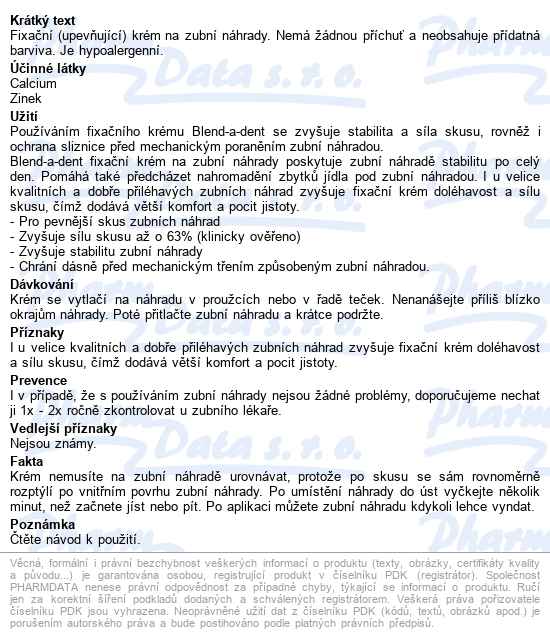 Fixační (upevňující) krém na zubní náhrady. Nemá žádnou příchuť a neobsahuje přídatná barviva. Je hypoalergenn...