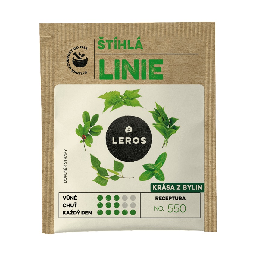 Leros Štíhlá linie je bylinná směs s vyváženou kombinací zeleného a černého čaje, máty, maté, břízy, kopřivy, fenyklu a chaluhy bublinaté. Zelený čaj přispívá ke kontrole tělesné hmotnosti a spolu s černým čajem chrání buňky před oxidativním stresem. Kopřiva a maté podporují přirozené vylučování vody z organismu, zatímco máta, fenykl a chaluha napomáhají správnému trávení.