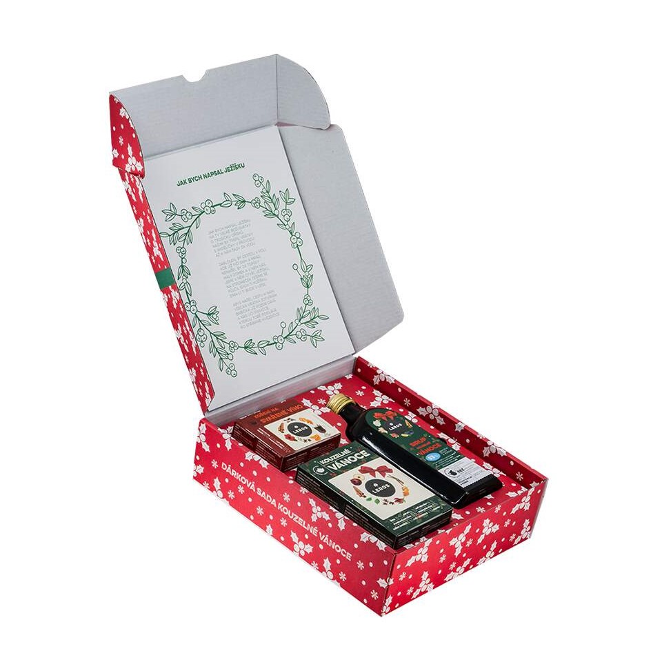 - Obsahuje tři produkty: čaj, sirup a koření na svařené víno.