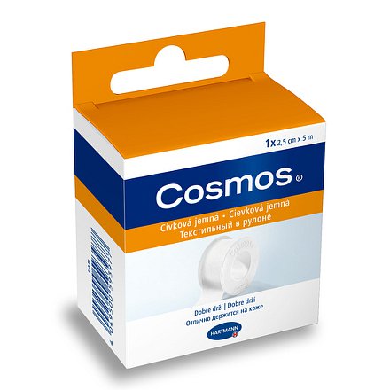Pevná textilní náplast Cosmos s vysokou přilnavostí a odolností, šetrná k pokožce, ideální pro fixaci obvazů.