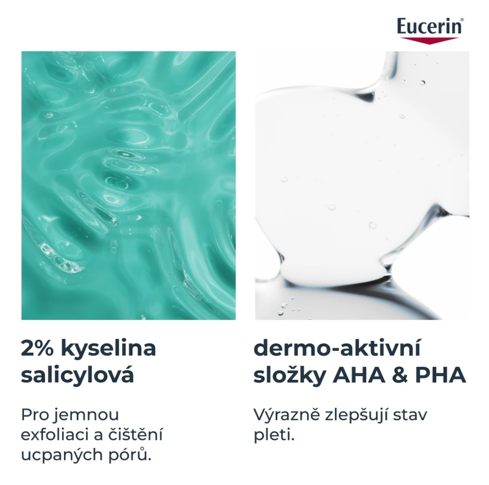 Eucerin DermoPure Clinical Zmatňující fluid je speciálně vyvinutý pro potřeby mastné pleti se sklonem k akné. Jeho lehká a nemastná textura se rychle vstřebává, nezatěžuje pleť a zanechává ji dlouhodobě svěží a matnou. Díky kombinaci karnitinu, který reguluje tvorbu kožního mazu, a kyseliny salicylové s exfoliačními účinky pomáhá redukovat nedokonalosti, čistit póry a předcházet jejich opětovnému ucpávání.