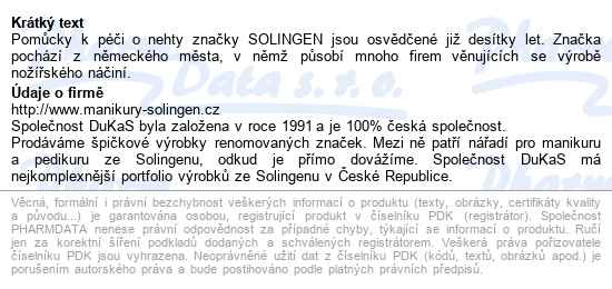 Pomůcky k péči o nehty značky SOLINGEN jsou osvědčené již desítky let. Značka pochází z německého města, v něm...