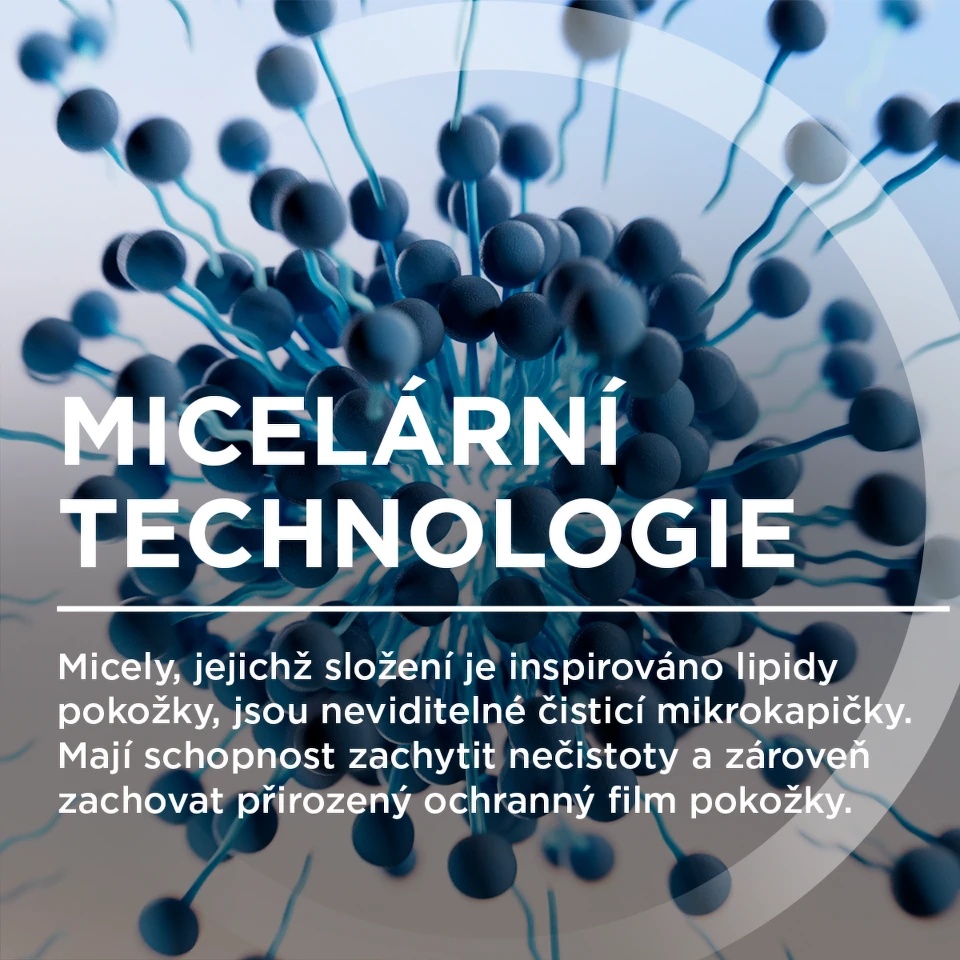 Čisticí odličovací micelární voda respektující citlivou pokožku.