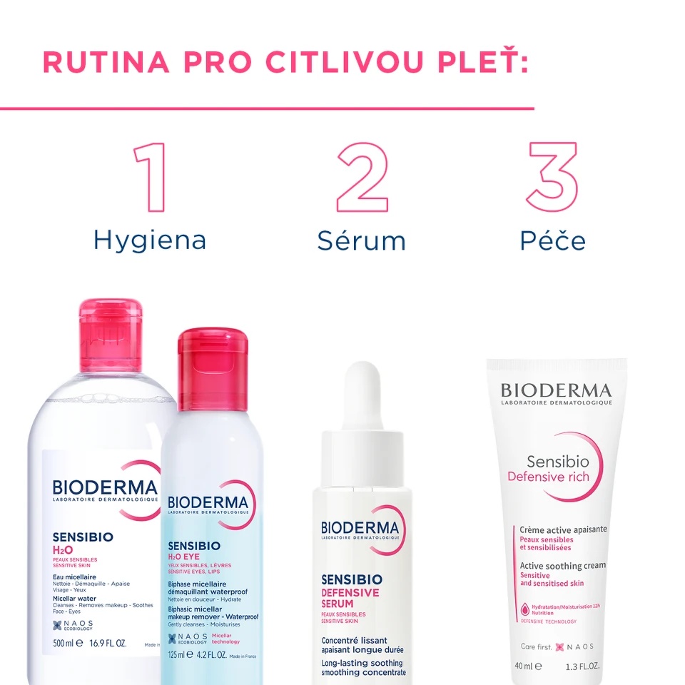 - Zklidnění a péče: Bioderma Sensibio Defensive a Sensibio Defensive Rich