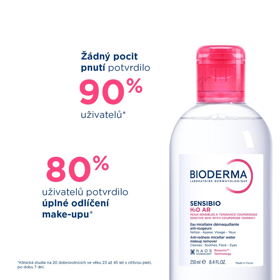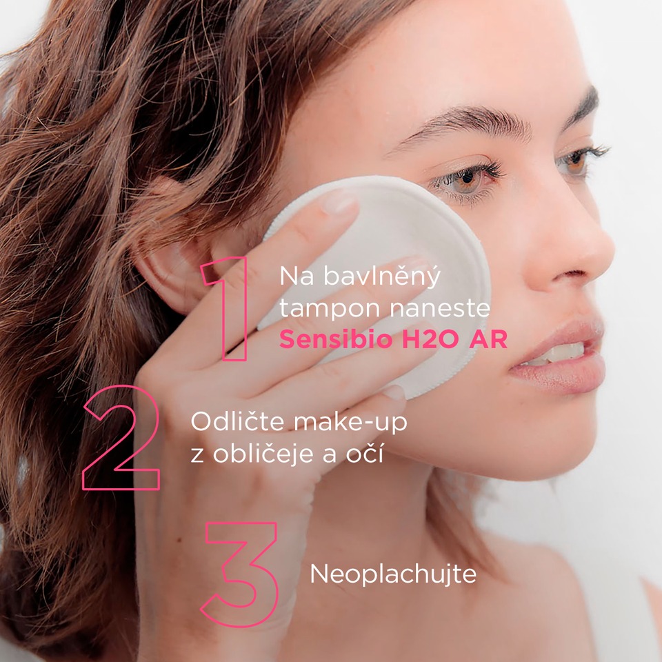 Trápí Vaši pleť začervenání nebo rosacea? Čisticí micelární voda Sensibio AR obsahuje komplex účinných látek a unikátní patent ROSACTIV™, který minimalizuje začervenání a rozšířené žilky a působí proti jejich návratu.