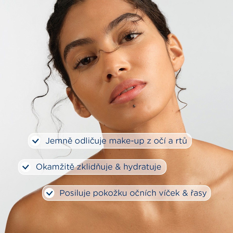 - Odstraňuje voděodolný make-up z očí a rtů.