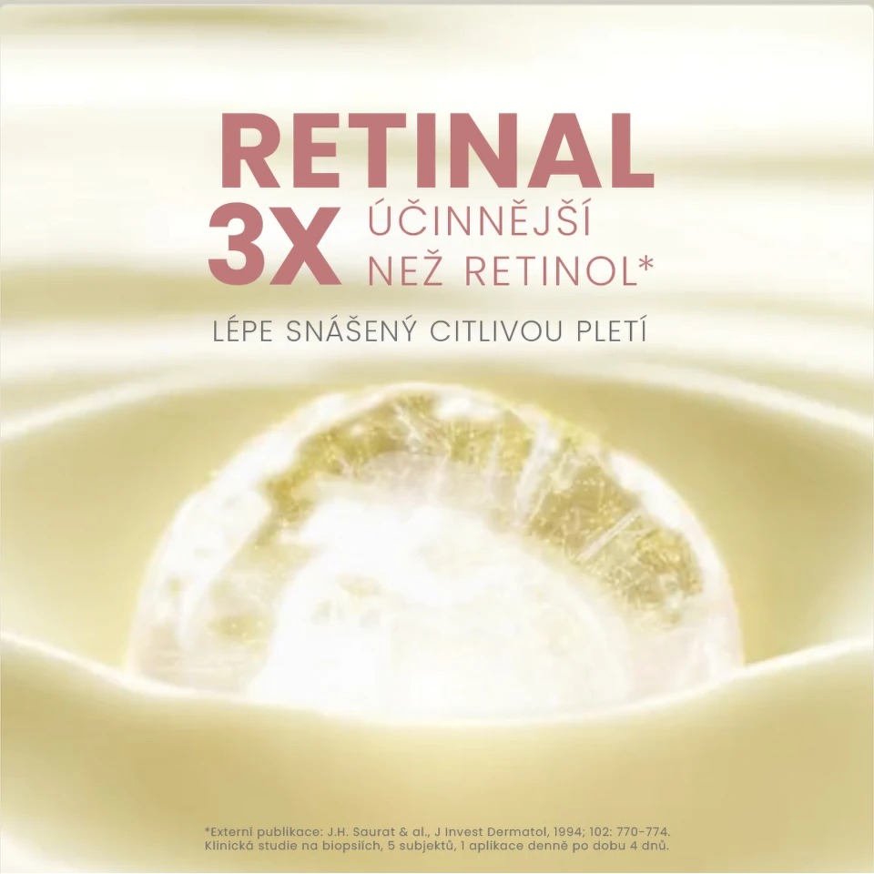 Obsahuje 0,1 % retinalu pro intenzivní péči o vrásky.