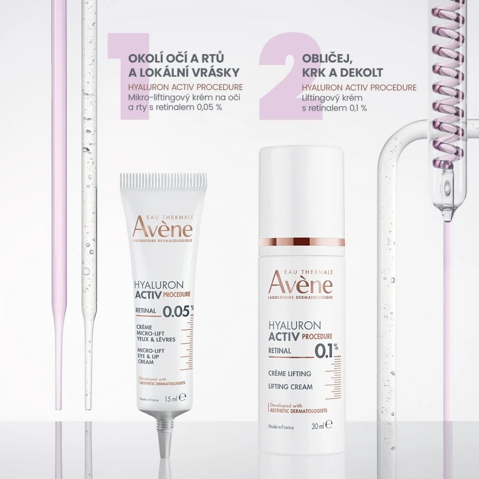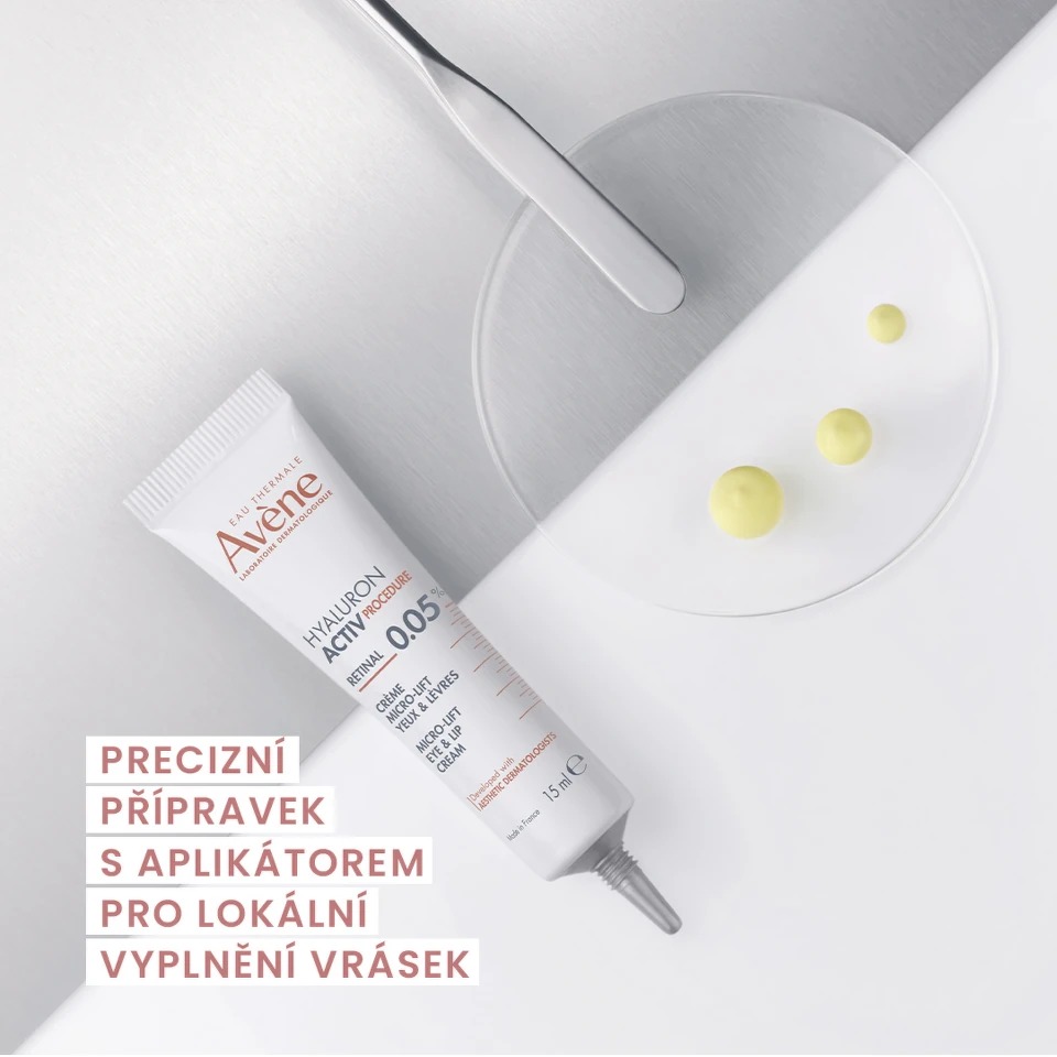 Avène Hyaluron Activ Procedure Mikro-liftingový krém na oči a rty je speciálně navržený pro jemné, ale účinné ošetření citlivých oblastí kolem očí a rtů, kde se vrásky objevují nejdříve a bývají nejvíce viditelné.