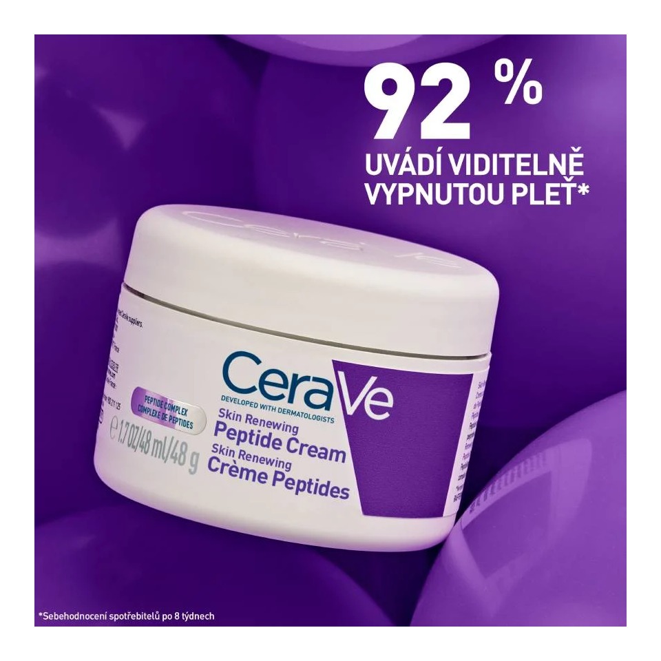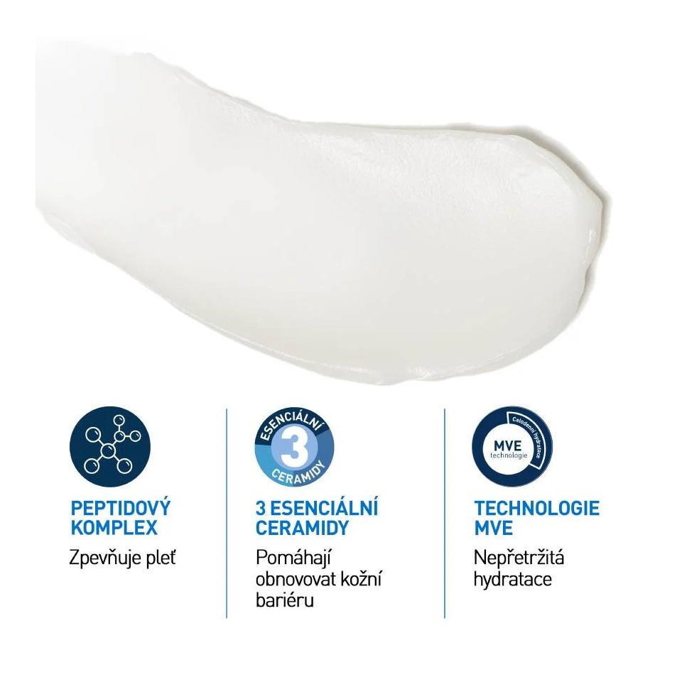 CeraVe Obnovující peptidový krém poskytuje pleti hloubkovou hydrataci a podporuje její přirozenou obnovu. Díky kombinaci peptidového komplexu, niacinamidu, kyseliny hyaluronové a tří esenciálních ceramidů pomáhá posílit kožní bariéru, zpevnit pleť a obnovit její pružnost.
