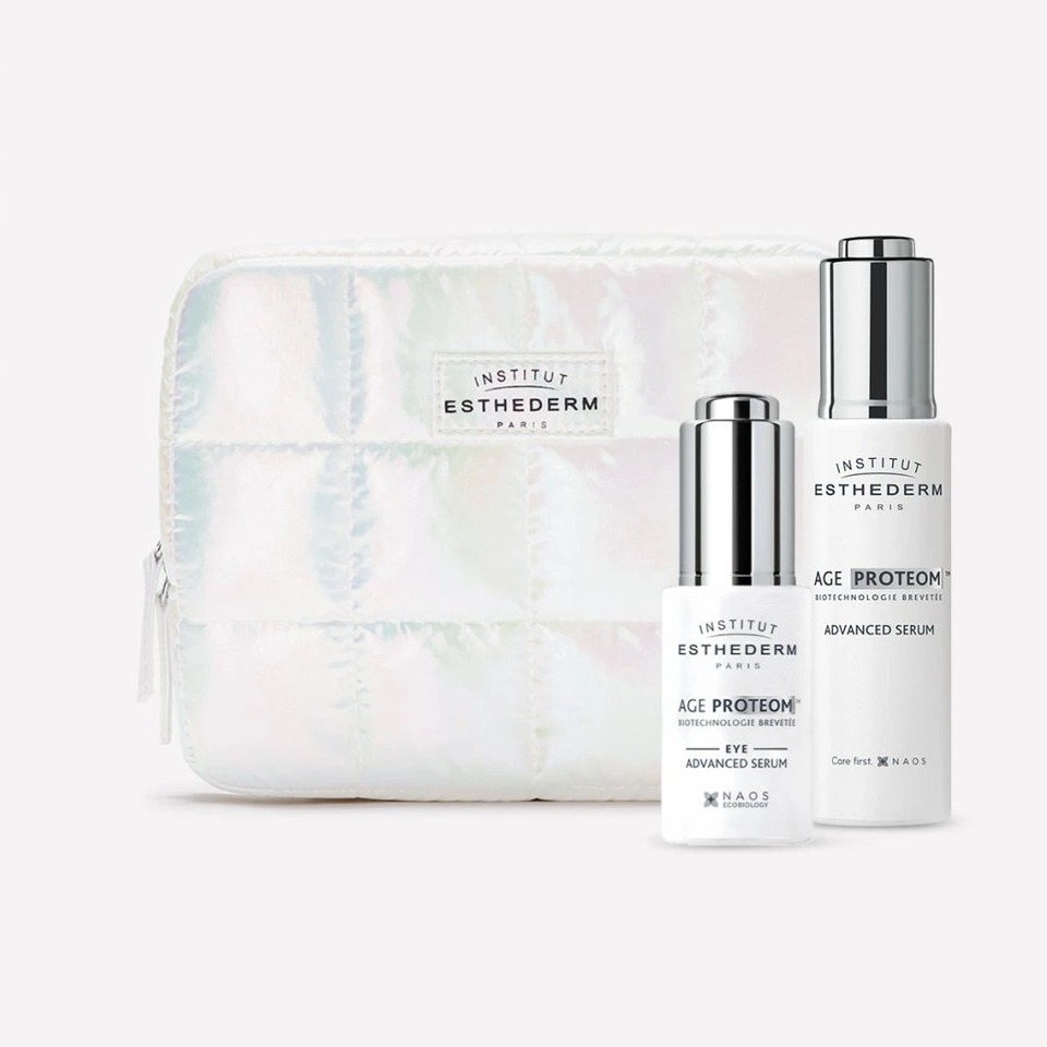 Dárkový set Age Proteom™: pleťové sérum + oční sérum v kosmetické taštičce pro pevnější, zářivou pleť.
