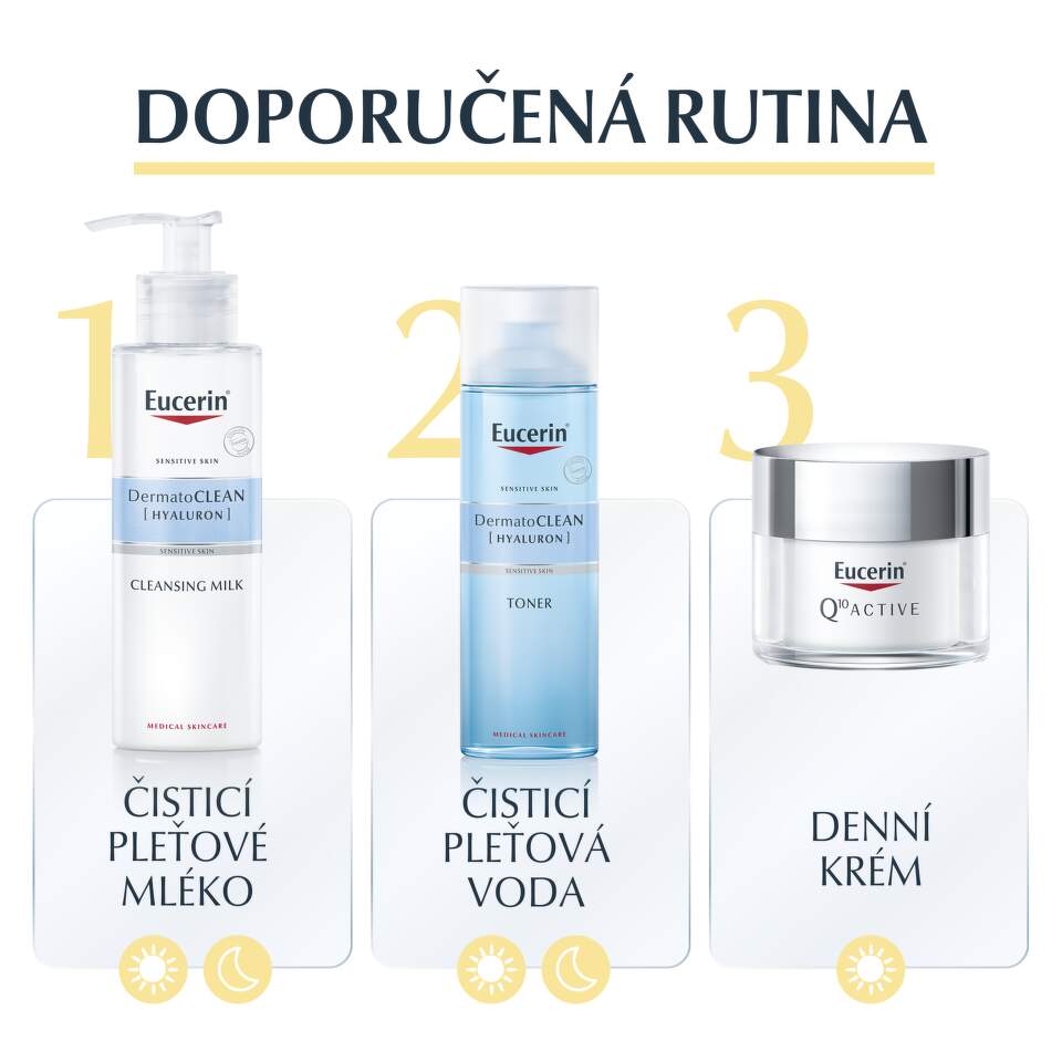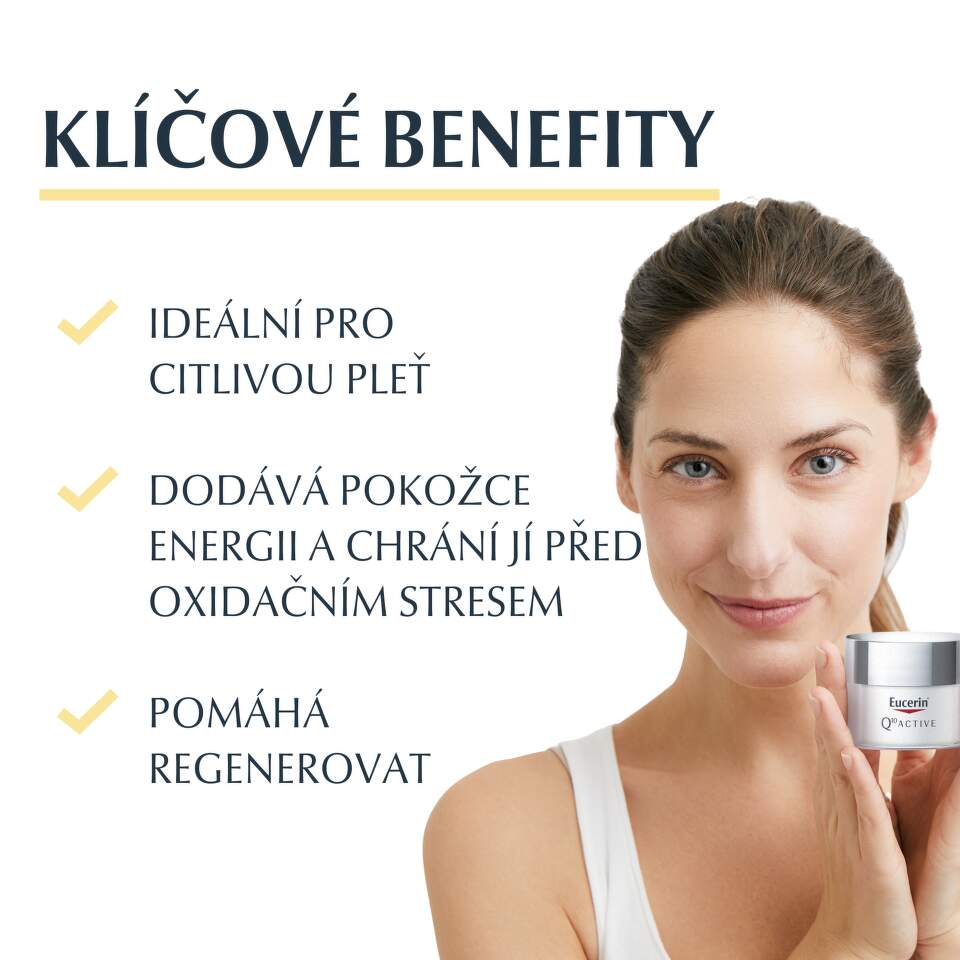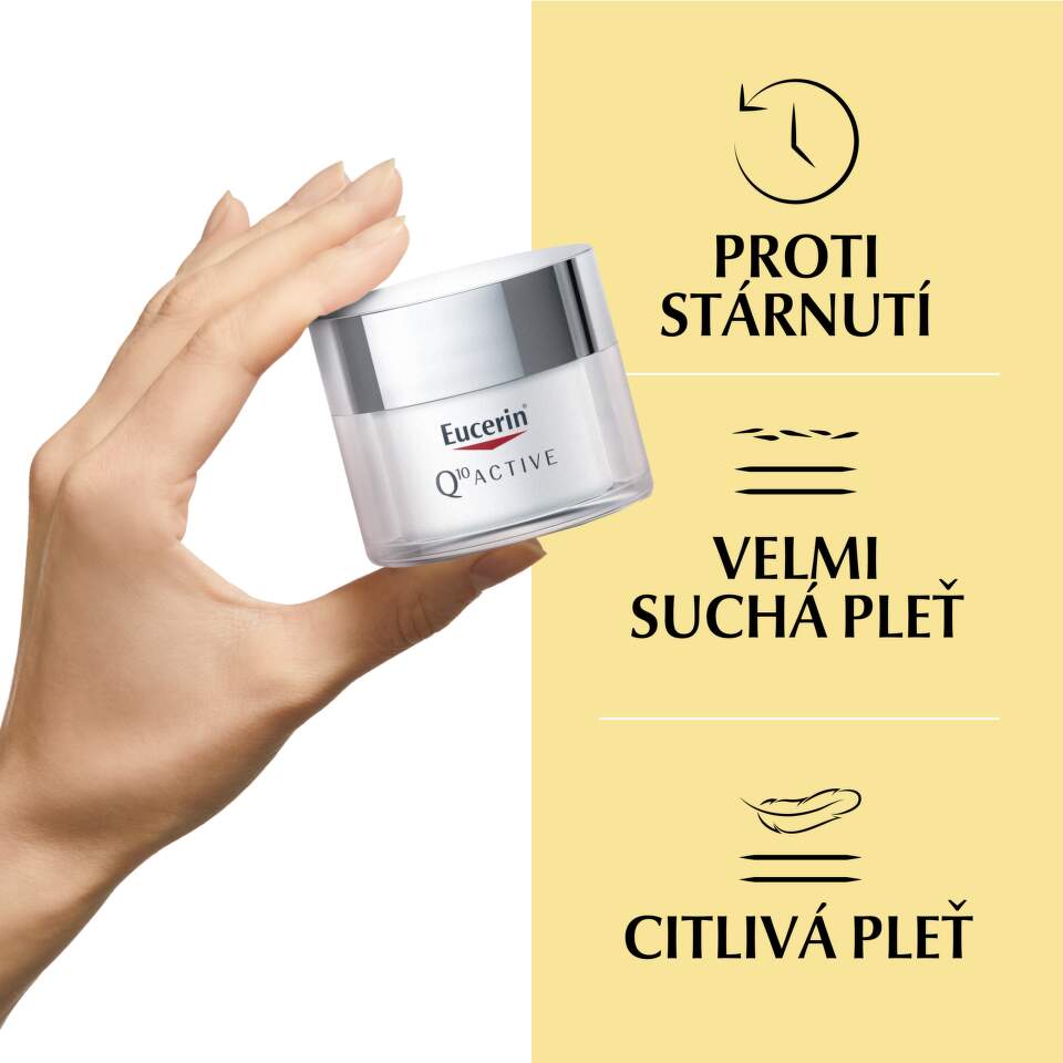 Tip: Ideální jako podklad pod make-up. Pro kompletní anti-age rutinu kombinujte s nočním krémem z řady Eucerin Q10 Active.