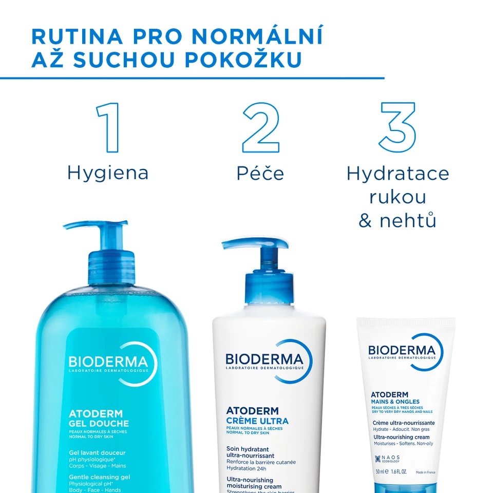Bioderma Atoderm Sprchový gel 500 ml jemně čistí pokožku, aniž by ji vysušoval. Obsahuje vyživující složky, které obnovují komfort a přirozenou hydrataci. Patentovaný komplex Skin Protect™ stimuluje tvorbu kyseliny hyaluronové a doplňuje lipidy, čímž podporuje ochrannou funkci pokožky. Svěží vůně a jemná pěna poskytují příjemný zážitek z každodenní hygieny. Ideální pro rodiny i osoby se suchou nebo citlivou pokožkou.