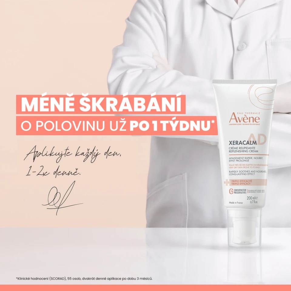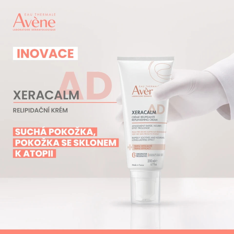 Avène XeraCalm A.D relipidační krém je speciálně vyvinut pro každodenní péči o velmi suchou, citlivou a atopickou pokožku se sklonem ke svědění. Minimalistické složení s vysokou snášenlivostí pomáhá obnovovat kožní bariéru a přispívá k celkovému zklidnění pokožky.