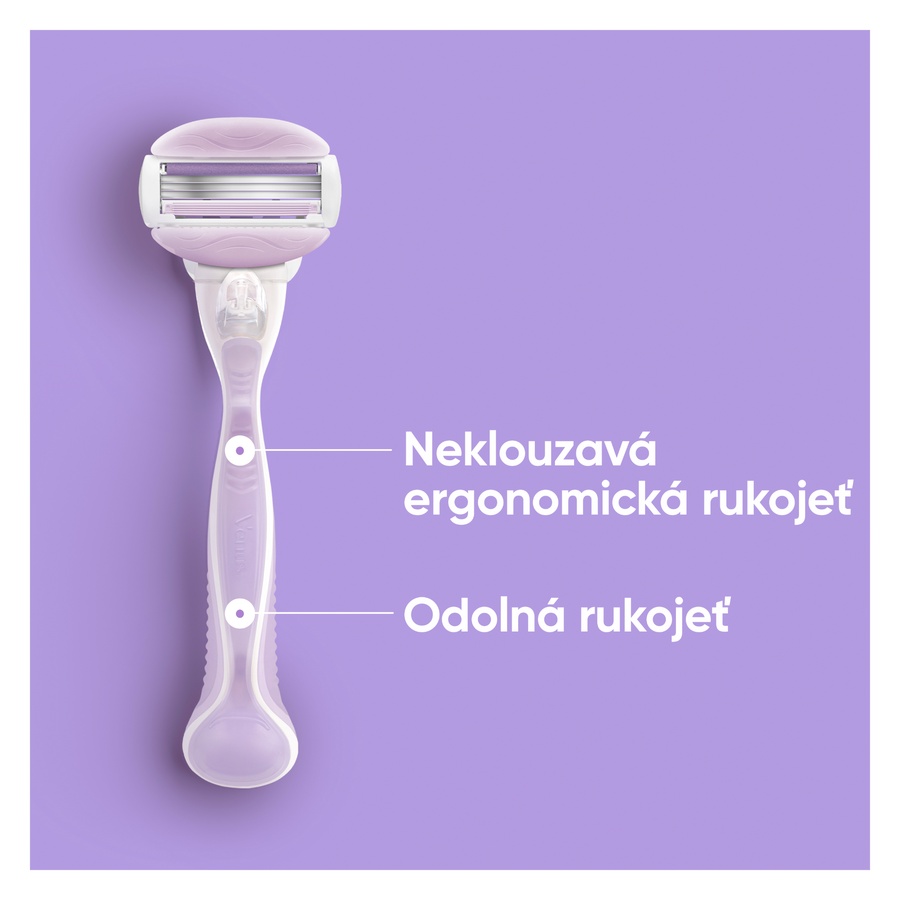 3 břity navržené speciálně pro ženské tělo zajišťují hladké a precizní oholení.