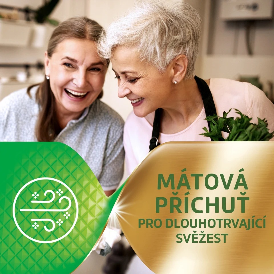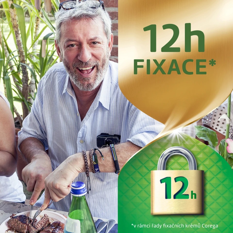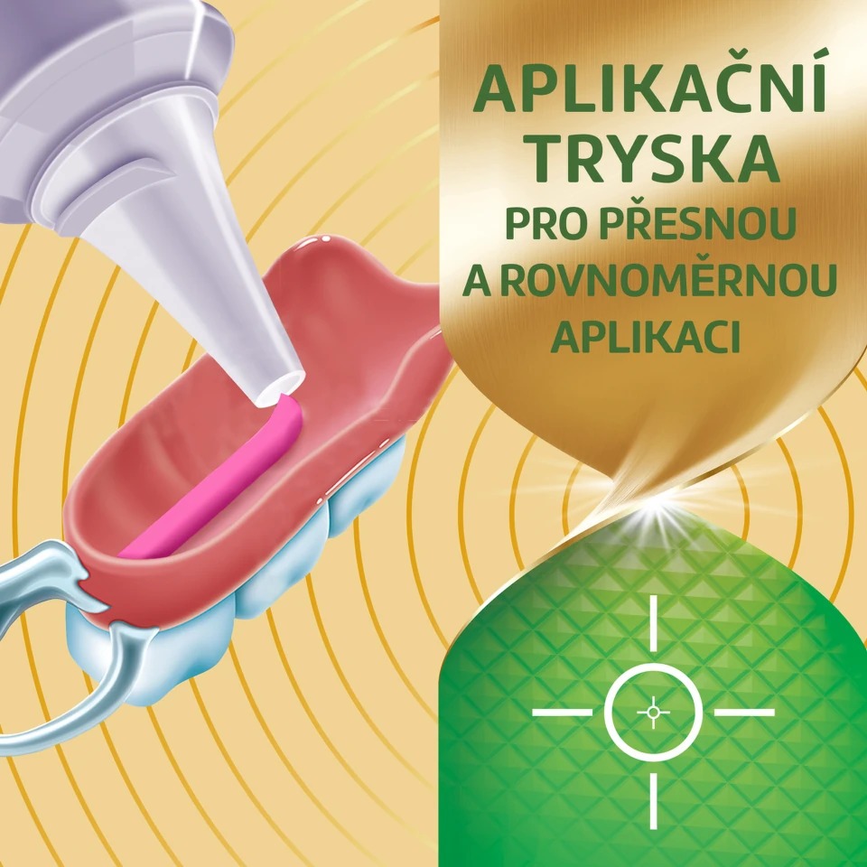 Pevná fixace až na 12 h se svěží mátovou chutí. Zabraňuje pronikání jídla pod náhradu.
