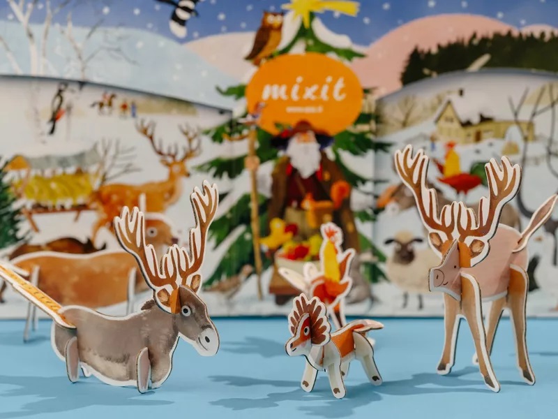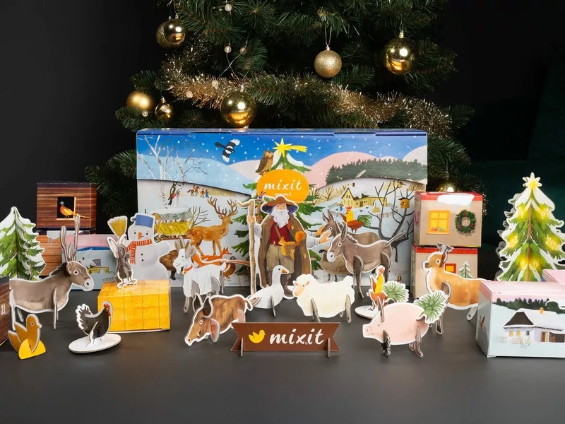 Ikona Vánoc od Mixit je zpět – větší, hravější a nabitější než kdy dřív. V elegantní krabici (50 × 28 × 10 cm) najdete 25 okének a 26 dobrot: od křupavých sýrů a ovocí až po čokoládové pokušení a horké novinky včetně Crème boule à la vaječný likér. Letos navíc s „zvířátkovou farmičkou“ – dílky na skládání fantazijních tvorů, samolepky, omalovánky a minihry.