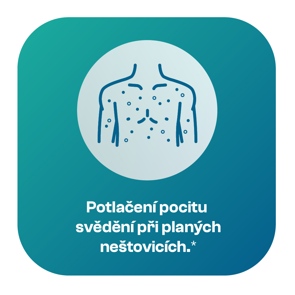 Úleva od svědění, kopřivky a alergické rýmy. Antihistaminikum s nástupem účinku do 30 minut.