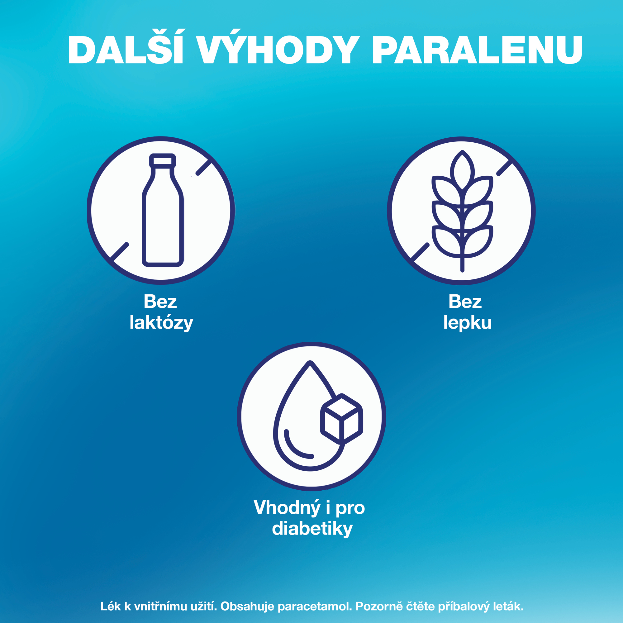 Přípravek PARALEN 500 mg tablety nezhoršuje žaludeční potíže a nevyvolává zvracení, mohou je užít i nemocní se žaludečními a dvanáctníkovými vředy a nemocní, kteří nesnášejí kyselinu acetylsalicylovou. Přípravek PARALEN 500 mg tablety je určen ke snížení horečky při chřipce, nachlazení a jiných infekčních onemocněních. Přípravek PARALEN 500 mg tablety je také vhodný při bolestech různého původu, např. při bolestech hlavy, zubů, bolestivé menstruaci, bolesti pohybového ústrojí provázející chřipku a nachlazení a bolesti zad. Přípravek PARALEN 500 mg tablety je určen pro dospělé, dospívající a děti od 6 let věku.