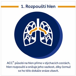 Acetylcystein, léčivá látka přípravku ACC® 200 mg, rozpouští hustý hlen v dýchacích cestách. Řídký hlen lze snadněji vykašlat, čímž dochází k uvolnění dýchacích cest.