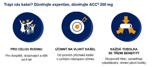 ACC® 200 mg tvrdé tobolky, volně prodejný léčivý přípravek na vlhký kašel. K vnitřnímu užití s účinnou látkou acetylcystein. Čtěte pozorně příbalový leták.
