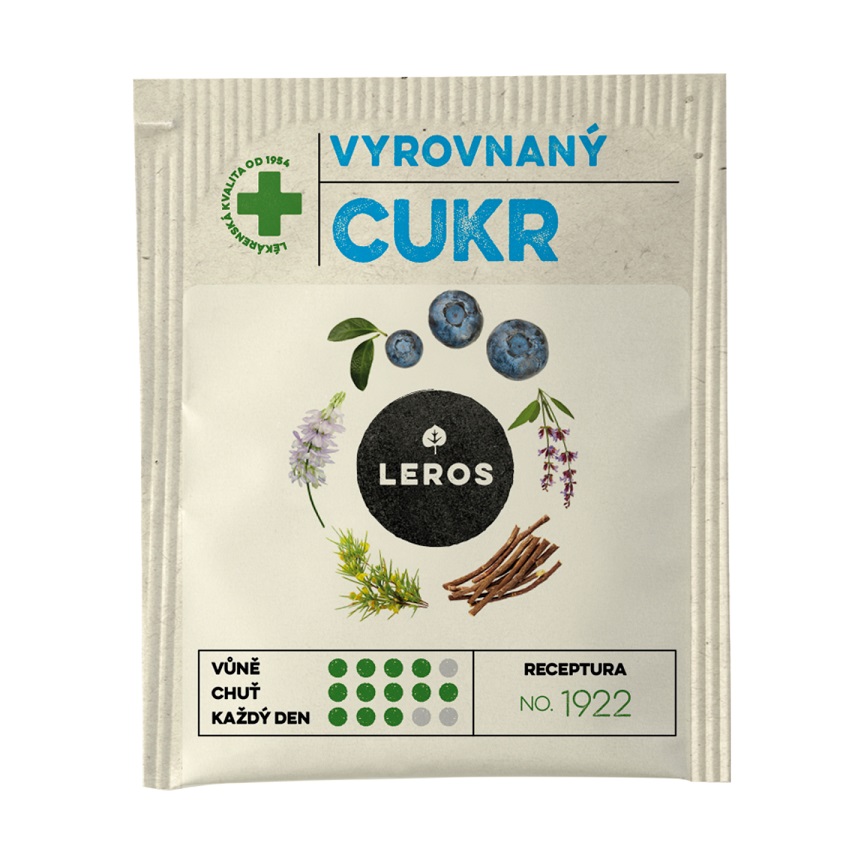 Leros Čaj vyrovnaný cukr je doplněk stravy určený pro podporu normální hladiny krevního cukru. Borůvkové listy a gymnema lesní jsou tradičně využívány při péči o metabolismus cukrů. Směs dalších bylin přispívá k harmonizaci trávení a celkovému pocitu vitality.