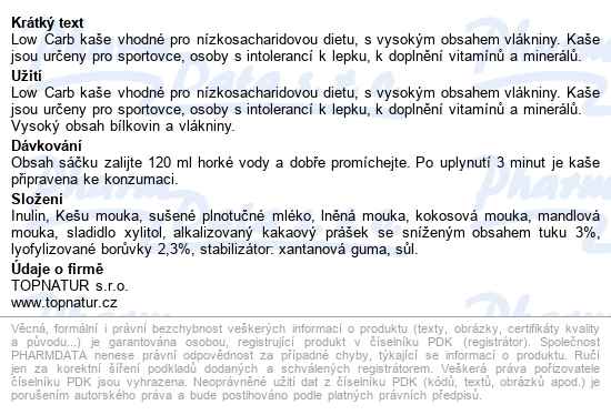 - Topnatur Low Carb Kaše Kakao&borůvka 60g