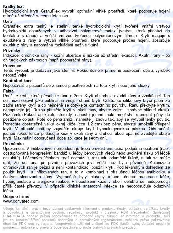 - Granuflex Extra Tenký 10x10 cm, hydrokoloidní krytí, 5 ks